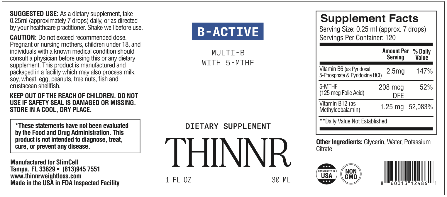 Thinnr B-Active is a high-performance liquid B-complex designed to support nerve health, cardiovascular function, and daily energy levels. With bioactive forms of B12 (Methylcobalamin), folate (5-MTHF), and two forms of B6, it’s ideal for anyone facing fatigue, nerve discomfort, mood swings, or poor nutrient absorption.